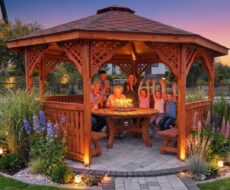 Zahradní altán ARIZONA má tvar šestiúhelníku a je vyroben ze sušeného borového dřeva. Tvoří jej 6 nosných sloupů o rozměrech 9×9 cm při rozměru ø 600 cm a dokonale zaručují bezpečnost v každém počasí. Zahradní altán ARIZONA ø 600 cm má celkovou výšku ve štítu přibližně 315 cm. Sloupy jsou osazeny na podlaze s hranolovou konstrukcí (5x4 cm), kterou spojují z masivní střechou, pokrytou kvalitním finským šindelem. Výška nosných sloupů po střechu je 230 cm, resp. 200 cm při rozměru ø 320 cm celková výška po sedlo střechy je 270 cm. Podlahová plocha altánu je 23,50 m². Prostor mezi sloupy vyplňuje pevné laťkové zábradlí s možností vynechání pro vstup do altánku. Součástí altánu je stůl a 5 lavic, které pohodlně usadí 10-15 lidí.