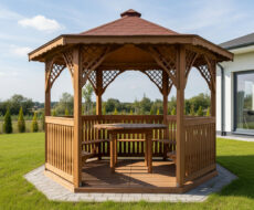 Zahradní altány a vybrané zahradní domky na nářadí dodáváme již natřené impregnačním nátěrem v ceně.