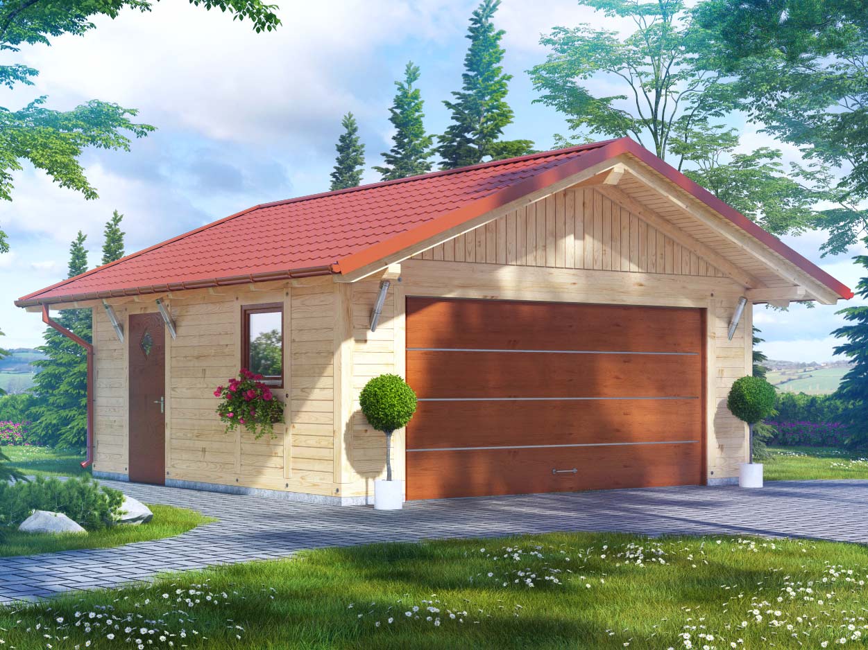 DŘEVĚNÁ GARÁŽ FLORENTYNA je perfektním řešením pro rodinné domy, u kterých se hodí jedno parkovací místo navíc. Garáž zabírá plochu 620 x 600 cm, z přední a zadní strany má střecha přesah 80 cm mimo obrys garáže. Garáž je postavena ze skeletové konstrukce tvořené ze 140 mm hranolů a 20 mm desek. Stěny jsou vysoké 228 cm a výška ve štítu je 284 cm. Tloušťka střešní desky je 19 mm. Střecha má symetrický sklon 22° a celkovou plochu 44 m². Celá konstrukce garáže je vyrobena z kvalitního skandinávského smrku, díky čemuž má dlouhou životnost a je snadno sestavitelná. Garáž lze rovněž využít i jako technickou místnost pro domácí kutily.