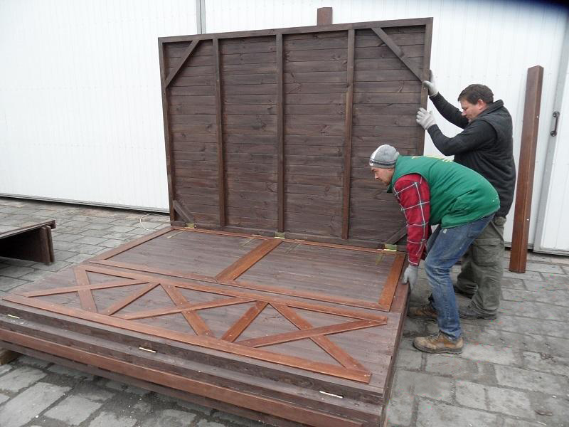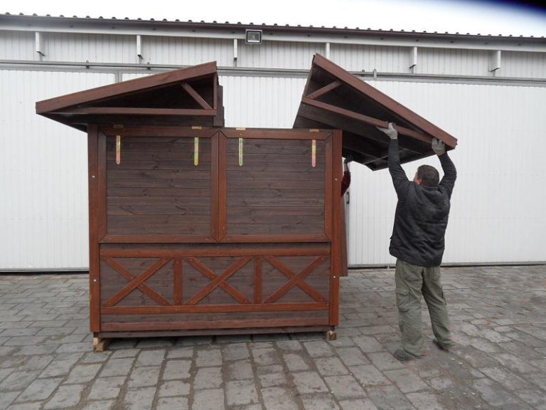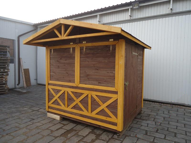Střechu tvoří finský asfaltový šindel. Dřevo je ošetřeno impregnací v barvě dle vašeho výběru z naší nabídky. Prodejní stánek je dodáván bez podlahy, kterou si však můžete u nás doobjednat.