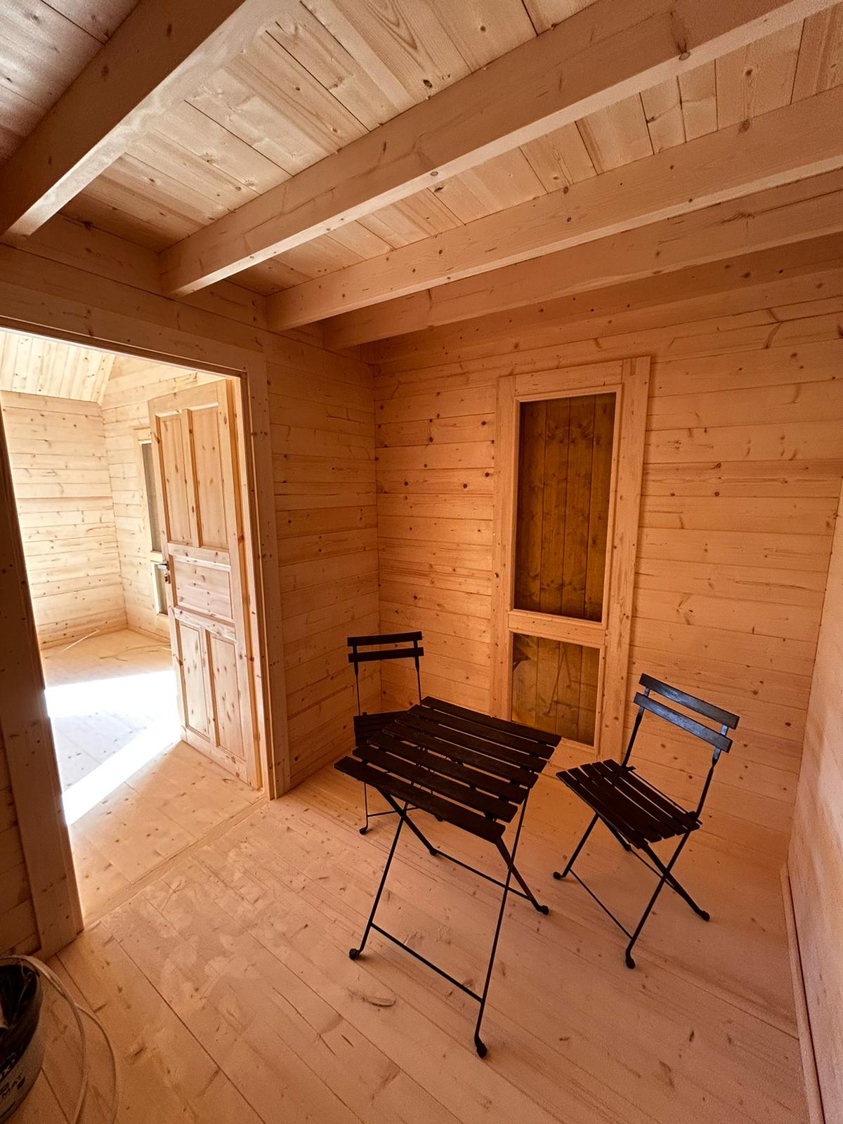 Tato zahradní chatka má dostupný celý balík doplňkových služeb jako je montáž domku, pokládka střešní krytiny, kompletní zateplení (podlaha, stěny, střecha), osazení oken a pod., o což se postará jeden z našich specializovaných montážních týmů. Chatka SANTIAGO IV je v tloušťce profilu 70 mm s kompletním zateplením o tloušťce 100 mm as vnitřním obitím tatranským obkladem 14 mm vhodná pro celoroční používání. Zahradní chatky zateplujeme z vnitřní strany.